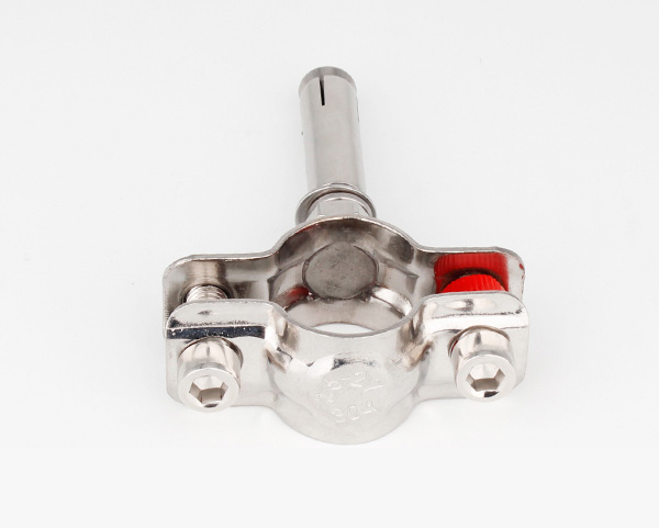 管支架還有一種組合方式較為牢固,不是那么美觀,主要由:兩個半圓組成,只有一個一頭跟螺栓用來禁錮,不需要墊圈,也沒有支撐的鋼管。